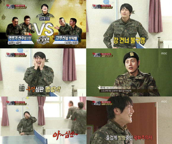 오전 훈련 후 개인정비시간에 짬이 난 류수영, 서경석, 손진영은 상병 장준화, 현정민과 함께 커피내기 탁구대결을 벌였다. 손진영과 서경석은 각자 자신의 선임과 짝을 이루어 대결을 펼쳤고 류수영은 심판을 맡았다.