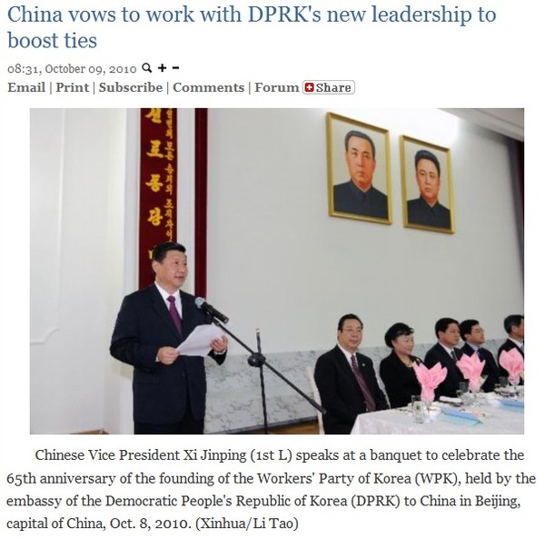 ■《한반도의 비핵화를 위한 중국의 입장은 분명하다. 어떤 상황에서도 비핵화 목표를 달성해 한반도의 평화와 안정을 이뤄야 한다. (한반도) 비핵화는 6자 회담 재개를 통해 이뤄져야 한다...(중략) 중국과 북한의 우호관계는 양국 인민의 이익에 부합한다. 중국 당과 정부는 북한과 함께 노력하기를 원한다.(습근평 中국가주석, 2013년 5월25일 中신화통신 보도)》