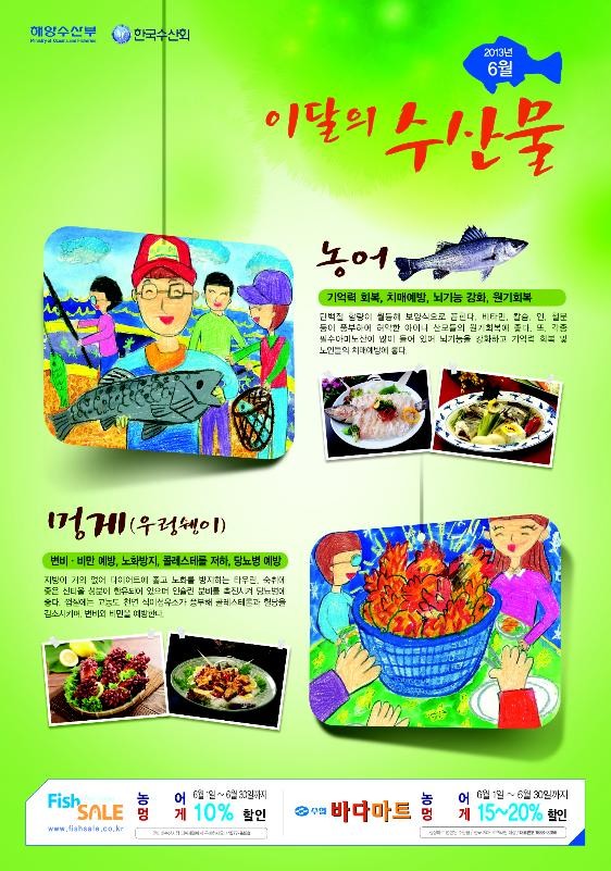 6월의 수산물은 인터넷수산시장(www.fishsale.co.kr)과 수협쇼핑(www.shshopping.co.kr)을 이용하면 시중가보다 10~20% 할인된 가격으로 구입할 수 있다.