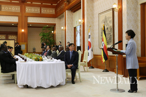 아프리카 정상들과 연쇄회담을 갖기도 했다.청와대 역시 박 대통령이 취임 후 국내에서의 첫 정상회담 상대로 우간다를 택한 이유로