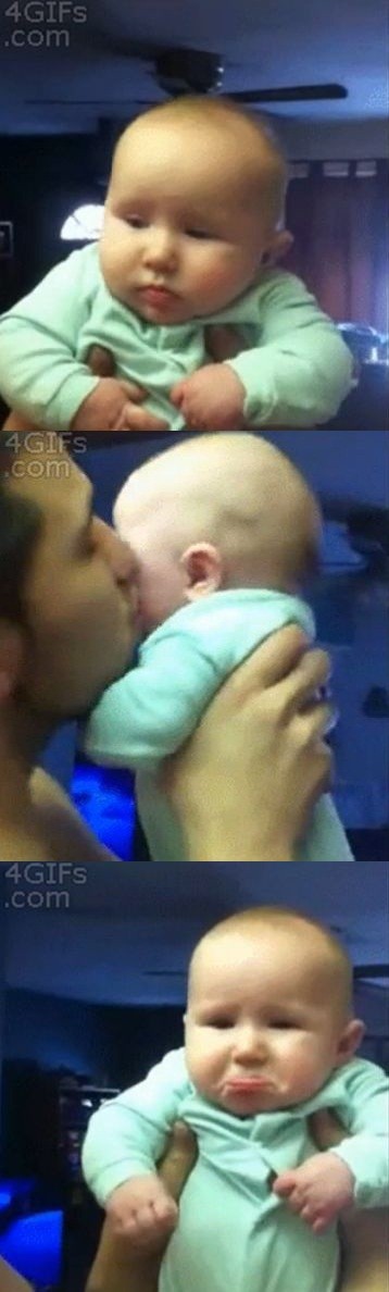 게재된 영상 속에는 아빠가 아기를 품에 안은 모습이 담겨 있다. 잠시 후 아빠는 아기 볼에 입맞춤을 하지만 아기는 금방이라도 울 것 같은 표정을 지어 웃음을 자아낸다.