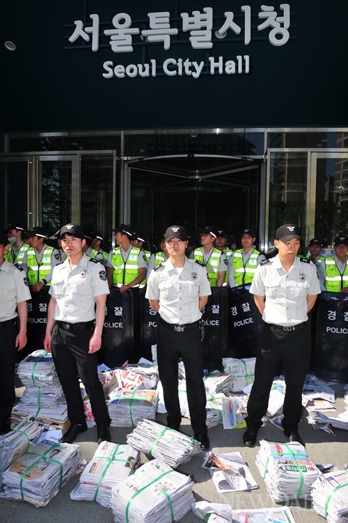 • [서울시 대응 보고서]가 공개된 뒤 이틀 만인 30일 오후 서울시청 앞에서는,