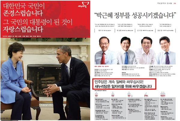 박근혜 대통령의 취임 100일을 기념해 발간한 당보에서,