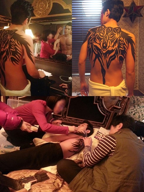 피도 눈물도 없는 마약조직의 중간 보스 정시현으로의 완벽 몰입을 위해 장장 10시간에 걸쳐 등 문신 분장을 감행했다고.
