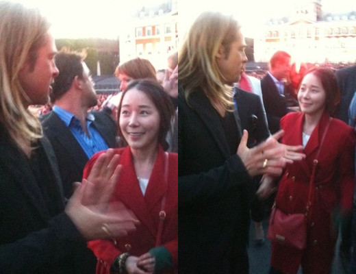 소이가 브래드피트와 함께 찍은 사진을 공개했다.소이는 3일 자신의 트위터에 “브래드와 나. 마지막 인터뷰 중 도촬 당함. 유일한 사진. 이제 뮤즈 공연!”, “도촬사진 한장 더! 난 완전 꼬꼬마. 곧 한국 온다고 하는데 월드워제트 파이팅”이란 글과 함께 두 장의 사진을 올렸다.