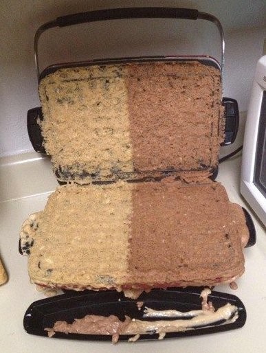 공개된 사진에는 가정용 와플기계에 반죽들이 뒤엉켜 있는 모습이 담겨 있다. 게시자는 “남자친구가 맛있는 와플을 해주겠다며 주방에 들어가 열심히 요리했다”고 설명했다.