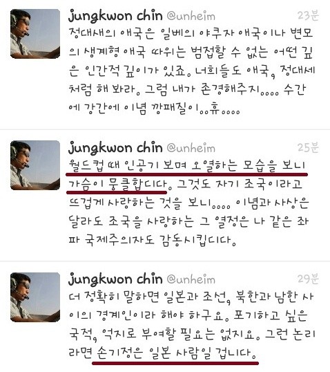 일부 우익 인사나 네티즌보다 훨씬 [진정성] 있게 다가왔다는 주장이다.이어 [대한민국 국적]을 달가워하지 않는 정대세에게