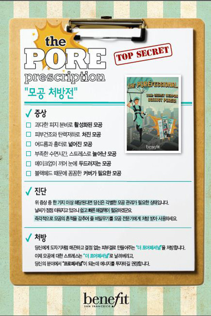 메이크업 브랜드 <베네피트>가 여름철 피부 고민인 [모공]을 해결해주기 위해 6월 한 달간 [굿바이 모공 프로젝트]를 진행, 무료 모공 진단 서비스와 무료 샘플 및 처방전 등을 제공한다.