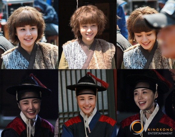 이날 공개된 사진 속 윤진이는 도적패의 딸로 선머슴 패션과 포졸 차림의 남장을 하고 있지만 숨길 수 없는 힐링 미소로 눈길을 끈다. 지속되는 지방 촬영과 빡빡한 스케줄에도 낙천적이고 생기발랄한 모습으로 촬영장 분위기를 즐기고 있다.