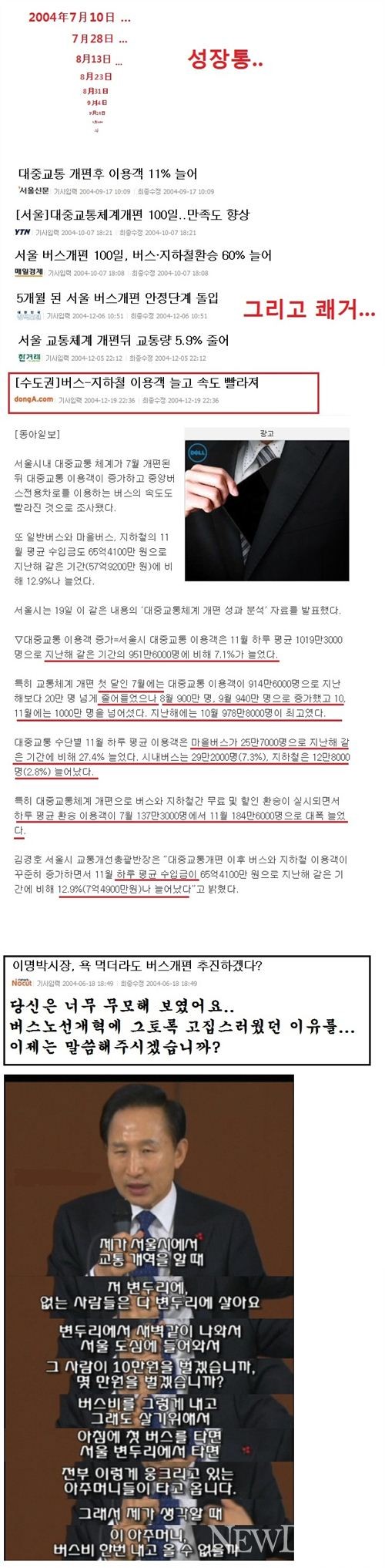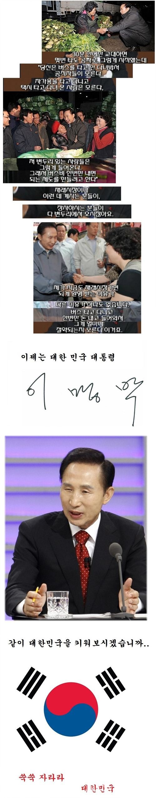 "버스왕 이명박"이란 제목의 게시글 전문이다.<일베> 회원들이 왜 이명박 전 대통령을