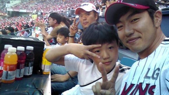 공개된 사진에는 LG트윈스 유니폼에 모자를 착용한 이종혁과 아들 이탁수 군이 카메라를 향해 손가락으로 브이자를 그리고 있다. 또, 이종혁 부자 옆에서 같은 포즈를 취하고 있는 최승경도 눈에 띈다.