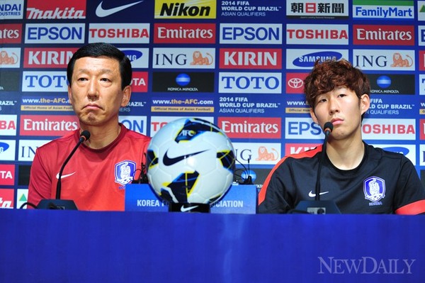 10일 오후 서울 성산동 서울월드컵경기장에서최강희 축구 국가대표 감독과 손흥민 선수가 기자회견을 가지고 [2014 브라질월드컵 아시아지역 최종예선 A조 7차전 한국-우즈베키스탄 경기]에대한 각오와 소감을 밝혔다.