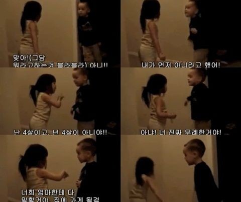 공개된 [가장 귀여운 말싸움] 영상 속에는 4살짜리 두 아이가 말싸움을 벌이고 있는 모습이 담겨 있다. 두 아이는 진지한 표정으로 “내 말이 맞다”, “내가 먼저 아니라고 했다”, “넌 조용히 해라” “넌 4살이 아니다 내가 4살이다”라며 서로를 향해 소리치고 있어 눈길을 끈다.