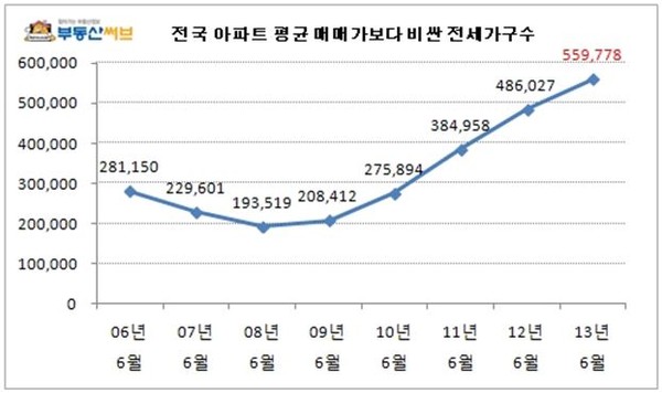 매매가보다 비싼 전세가구수는 앞으로 더 증가할 것으로 예상된다."