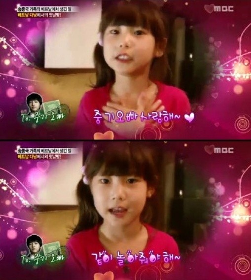 이어 “송중기 오빠한테 그럼 한 마디해”라는 엄마의 말에 지아는 잠시 부끄러워하다 이내 “중기오빠 사랑해. 우리집에 놀러와서 나랑 많이 놀아줘. 그림도 같이 그리고”라고 영상편지를 보냈다.