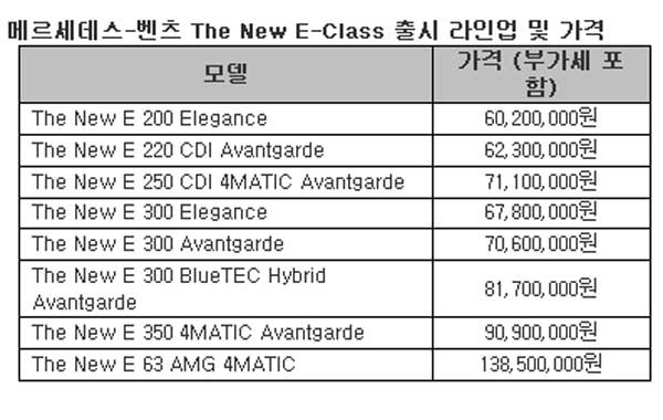 벤츠가 국내에 출시하는 <E클래스> 라인업은