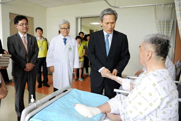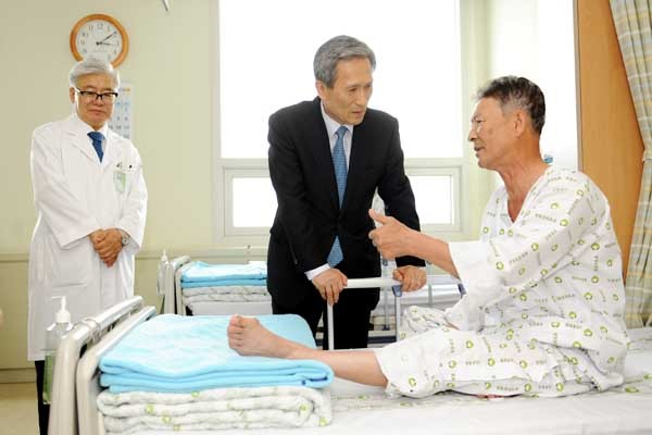 <김관진> 국방부장관이 14일 <호국보훈의 달>을 맞아 <중앙보훈병원>을 찾았다.