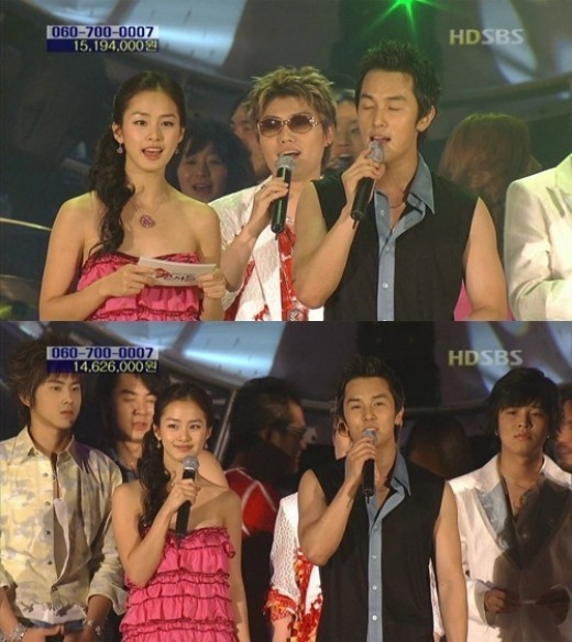 공개된 사진 속에는 지난 2004년 한부모 가족 돕기 <F콘서트> 진행을 맡고 있는 김태희와 신화 김동완의 풋풋한 모습이 담겨 있다.