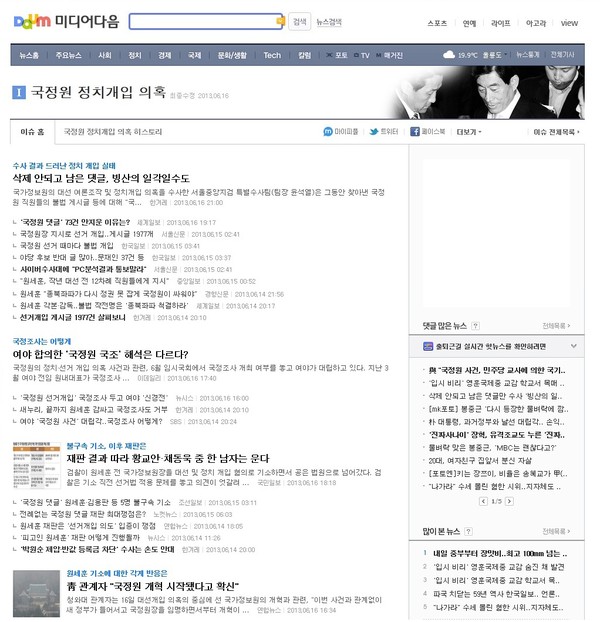 "<미디어 다음>은 국정원 사건 관련 기사를
