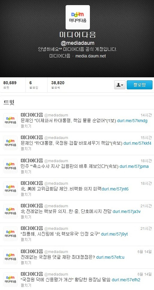 [기사 홍보용]으로 트위터를 운영하는 <미디어 다음>은,