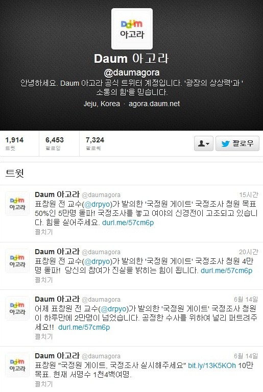 <다음 아고라>의 공식 트위터에서도 이같은 현상은 마찬가지다.