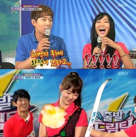 지난 16일 오전 방송된 KBS 2TV <출발드림팀 시즌2>에서는 걸그룹 씨스타와 포미닛의 양궁 단체전 대결을 펼치는 모습이 그려졌다.
