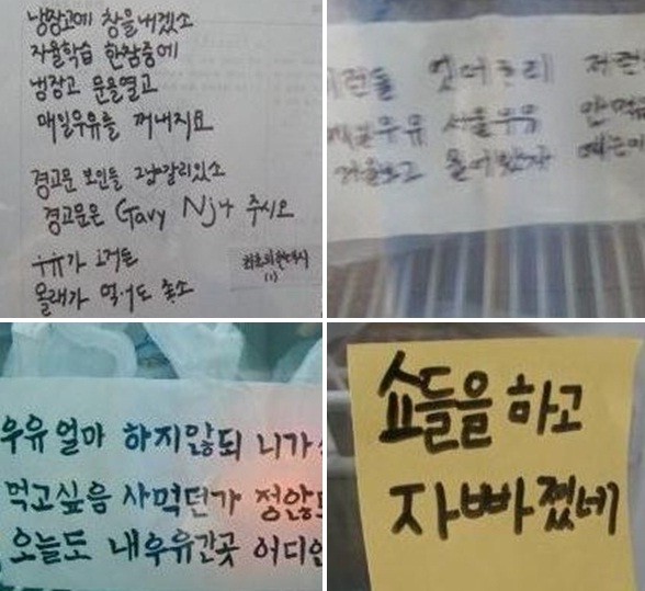 또 다른 쪽지는 “이런들 어떠하리 저런들 어떠하리 매일우유 서울우유 안 먹음 어떠하리”라는 태종 이방원의 시조를 패러디한 쪽지를 남겼다.