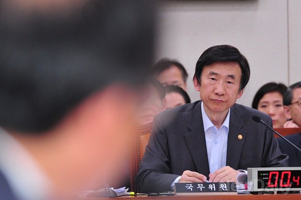 윤병세 외교장관이 18일 오전 국회 외교통일위 전체회의에 출석해민주당 심재권 의원의 질의를 경청하고 있다.
