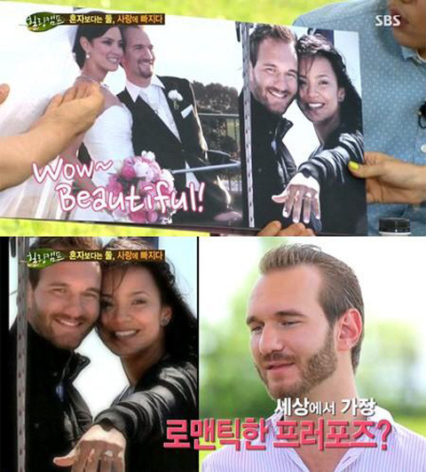 (닉부이치치 아내 공개, 사진=SBS 힐링캠프 방송 캡처)