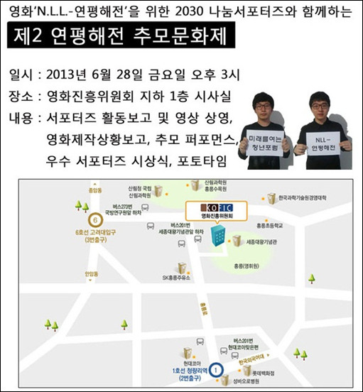 [연평해전 추모문화제]를 연다.오는 28일 오후 3시 <영상진흥위원회> 시사실에서 열리는