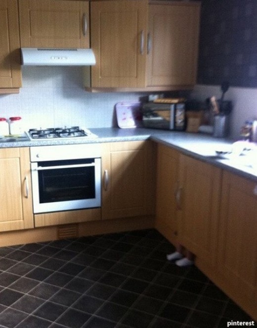 공개된 사진은 한 미국인이 딸과 숨바꼭질 중 모습을 촬영한 것으로 알려졌다. 어린 딸은 자신이 완벽하게 숨었다고 생각하지만 주방 싱크대 밑에 흰 양말을 신은 딸의 발이 나와 있어 웃음을 자아낸다.