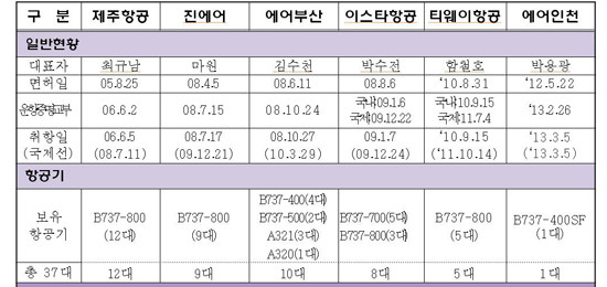 현재 우리나라의 저비용항공사는 모두 6개에 달한다.