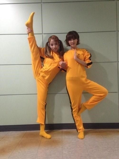 공개된 사진 속 김지숙은 이소룡의 트레이드마크인 노란색 트레이닝복을 입고 고우리와 함께 우스꽝스러운 포즈를 취하고 있다. 특히, 김지숙은 한쪽 다리를 일자로 번쩍 올리며 남다른 유연성을 과시해 놀라움을 자아냈다.