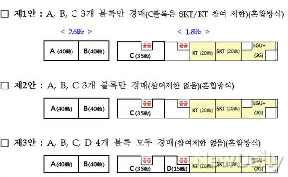 2가지 안 모두 KT 인접대역이 포함돼 있다.KT 인접대역 할당은 제외시켜야 하지만