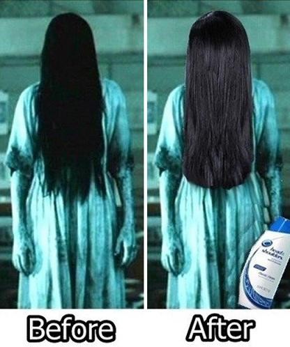 공개된 광고 사진은 공포영화 <링>에 나오는 사다코가 거칠고 푸석푸석한 머리를 풀어헤치며 등장한다. 하지만 샴푸를 한 뒤 비단결 같은 머릿결로 탈바꿈하는 모습이 눈길을 끈다.