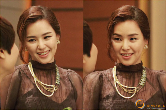 사진 속 이하늬는 촬영 대기 중 스태프와 이야기를 나누며 환하게 웃는 모습으로 갈색 시스루 블라우스에 업스타일 헤어를 매치하여 고급스러운 모습을 선보였다. 여기에 진주 장식이 가미된 목걸이와 귀걸이로 포인트를 줘 한층 우아함을 더했다.