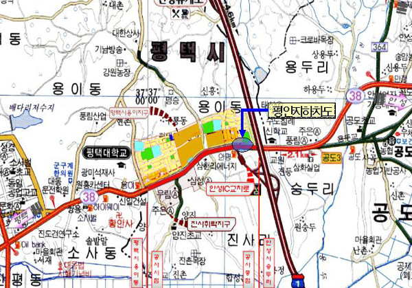 평택과 안성을 연결하는 국도 38호선 안성TG (톨게이트) 입구 부근의