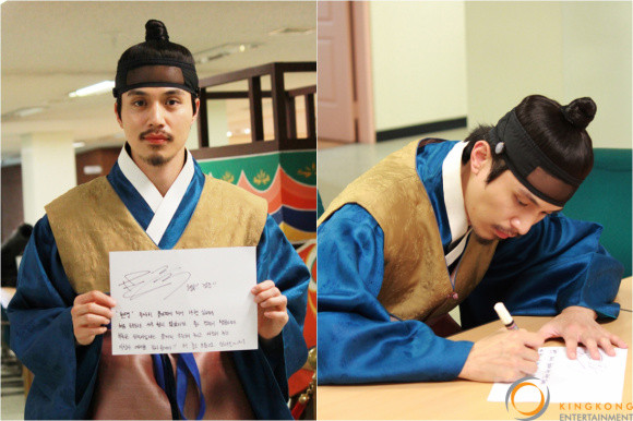 공개된 사진 속 이동욱은 도망자의 모습을 말끔히 벗고 꽃선비의 자태를 뽐내고 있으며, 그동안 지속적인 관심과 응원을 보내주신 시청자분들께 고마운 마음을 전하기 위해 자필로 사인과 종영소감을 적고 있는 모습이다.