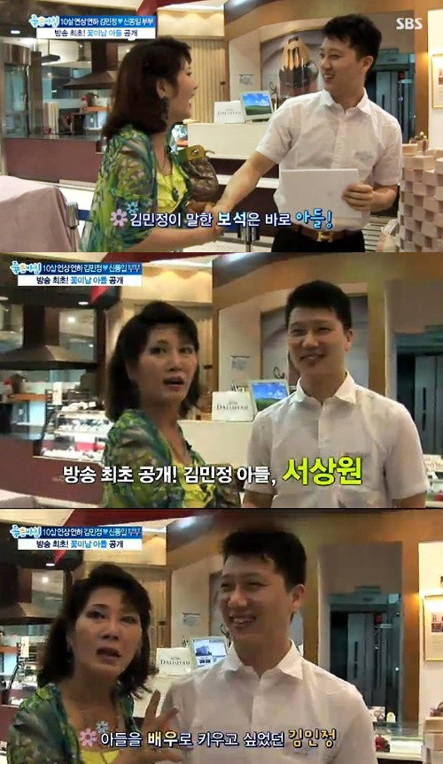 김민정은 28일 오전 방송된 SBS <좋은 아침>에서 아들 서상원 씨가 일하고 있는 직장을 찾아가는 모습이 그려졌다.