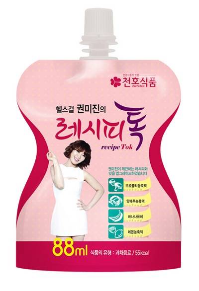 천호식품은 권미진과 손잡고 해독주스 <레시피톡>을 제품화해 판매에 나섰다.