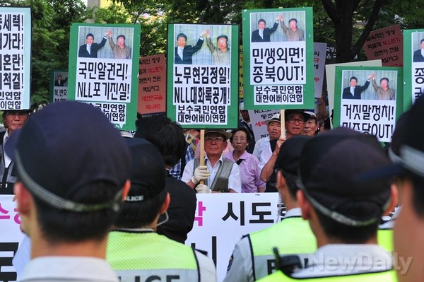 28일 오후 서울 중구 세종로 동아일보와 조선일보 앞에서대한민국 [보수단체]들이 <촛불끄기운동>을 펼쳤다.