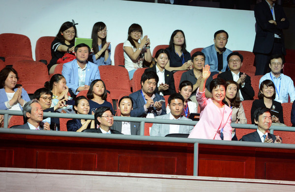 공연장을 깜짝 방문해 문화 교류의 한마당을 지켜보았다.박 대통령은 중국 관객들이 알아보고 손을 흔들자