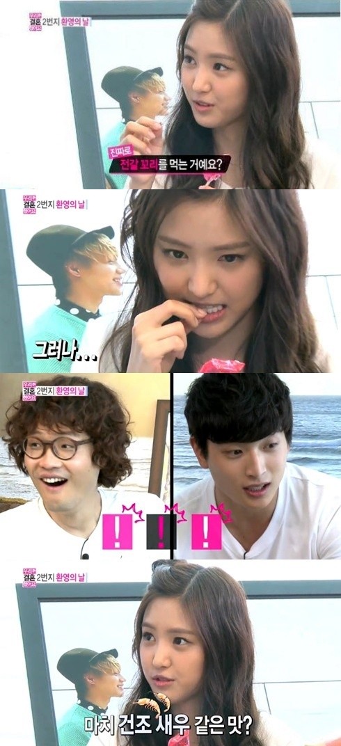 그녀는 무표정한 얼굴로 바삭바삭한 소리를 내며 먹었고, 이를 본 조정치와 정진운 등 모든 멤버들이 경악을 금치 못했다.