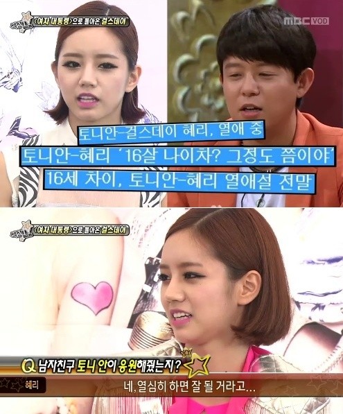 걸그룹 걸스데이의 혜리가 남자친구인 토니안을 언급했다.