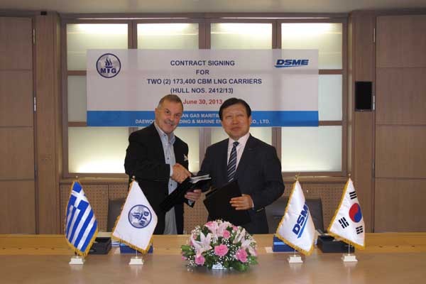 17만 3,400㎥급 LNG운반선 2척 수주 계약서에 서명했다.