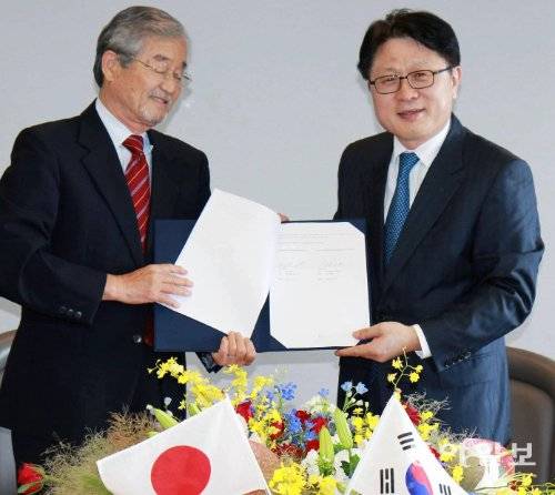 ▲ LG전자 안승권 사장(오른쪽)과 일본 NIMS 스케카츠 우시오다(Sukekatsu Ushioda) 이사장(왼쪽)이 26일 일본 츠쿠바에서 열린 '‘LG-NIMS 소재과학연구센터 (LG-NIMS Center of Excellence for Materials Science) 구축' 조인식에서 기념촬영을 하고 있다.