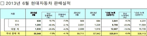 <현대차>는 6월 5만 5,548(이하 내수시장 기준)대를 판매했다.