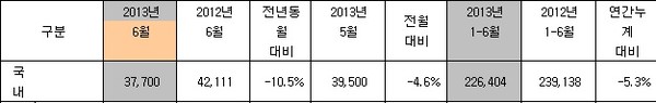 2012년 5월(4,008대)에 비해 10.4% 상승한 게 그나마 위안이다. -