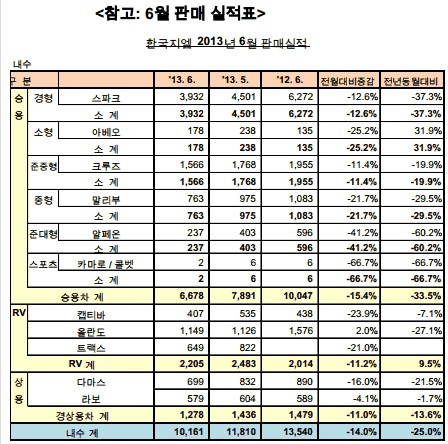 3위인 <한국지엠>은 6월 1만 161대를 판매했다.