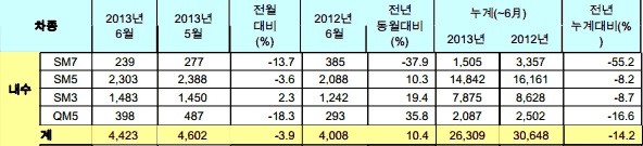 6월 4,423대를 판매, 5월(4,602대) 보다 3.9% 감소했다.